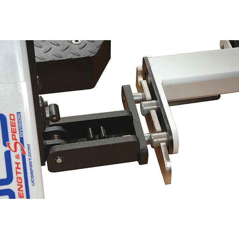 UCS Bench Docking Station – Centers bench between rack uprights providing consistent positioning. Station flips up and secures in place when not in use to eliminate tripping hazards. Offers four locations to lock bench into the UCS rack frame. (For use with UCS products ONLY).
