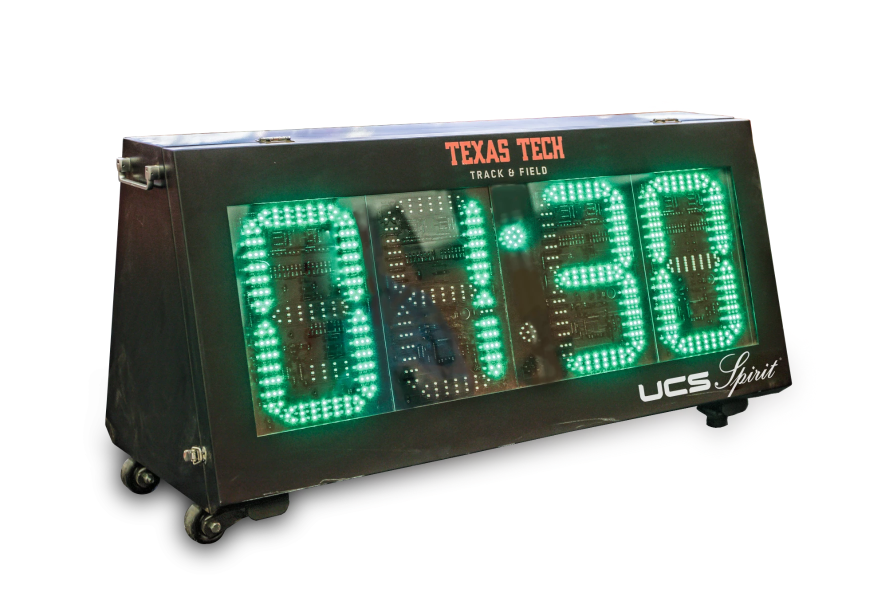 UCS Countdown Timer – 12″ LED digits. Built-in Tilt N Roll with handle. Clear visibility indoors or outdoors. Adjustable brightness settings. Battery life: up to 8 hours. Includes wireless remote control. Built-in keypad. Quick Reset Function for Next Attempt. Compatible with most Ultrasonic Wind Gauges.