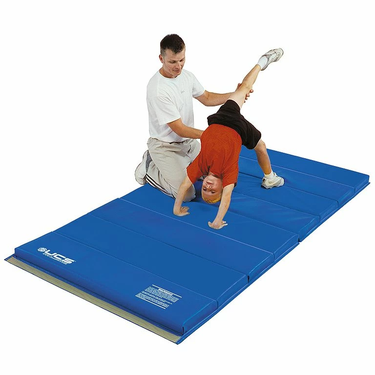 UCS Educator 240 Series Folding Mats – Perfect mats for physical education and preschool programs. Children will love the initial 1″ soft contact while being firmly supported by the 2.375″ polyethylene layer underneath. This full 2.375″ thick foam with two different compressions and densities will keep students feeling confident. The material and construction features include leather grain embossed, 21oz. knife coated vinyl; 2′ panels and accordion folds every 2′; and 207 high tenacity thread.