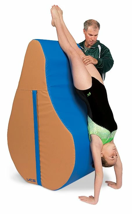 UCS Handspring Tear-Drop Trainer – Specially design to properly train the athlete performing a back or front handspring. The first trainer to simulate real time, competition speed movements for the back and front handspring. Perfect gift for Cheerleaders and Gymnasts! Flat surface supports the entire body throughout motion. Unique bowl side enables advanced athletes to maintain proper body position under their own power while providing real time feedback to both the coach and athlete. Flattened radius encourages snap down, helps precent roll-over onto the athlete and returns the trainer to the starting position. Forces the athlete to create linear motion to engage the machine. Comes complete with four handles for placement and to allow for proper spotting.