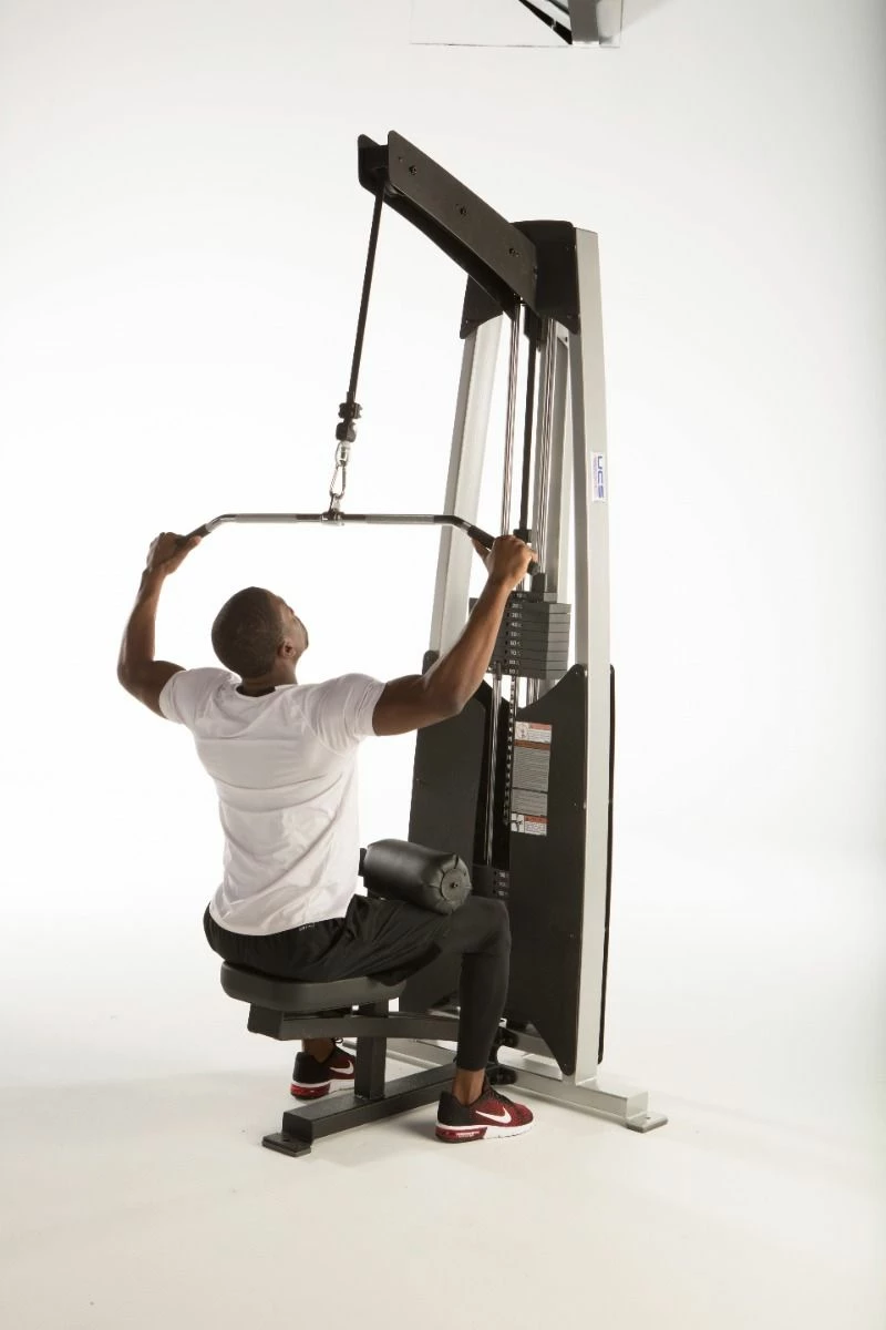 The Lat Pull-Down offers the ability to adjust the seat height and offers an adjustable pulley system to raise or lower the starting pull point.