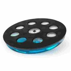 The NOHrD Eau-Me balance board is a patented wobble board. The tapered, almost cone-shaped base point makes it difficult to keep the board in balance. And if that weren’t difficult enough, the plastic base is filled with water, making balancing even more challenging. This is unique. The water makes the board unpredictable. Each movement of the user triggers the water to shift and your body has to respond to the impulses instantaneously to keep the board balanced. This is really tricky and challenges your whole body. The wooden footplate is good grip to ensure you won’t slip.
