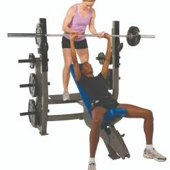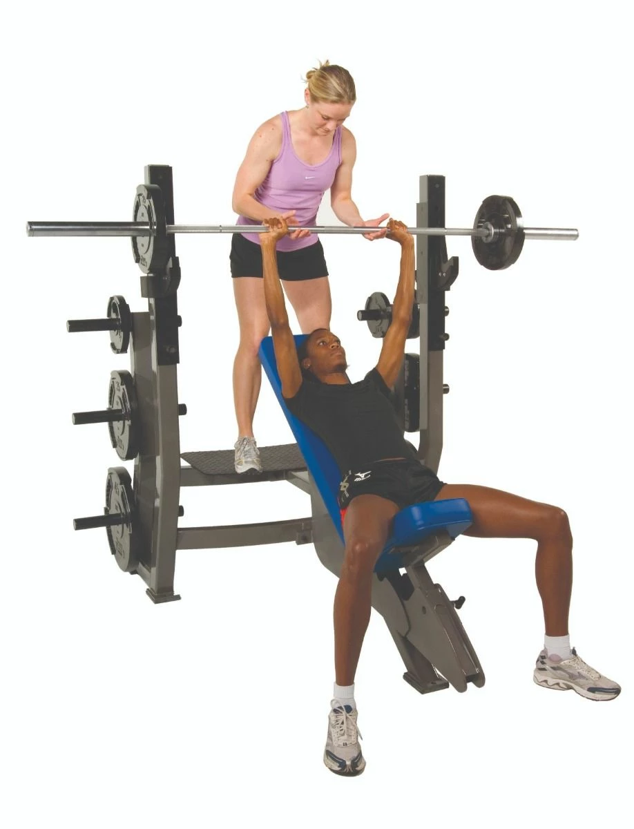 UCS Olympic Incline Bench – Ergonomic, Multi-Functional, Fully Adjustable. 12-peg weight storage. Bar height is adjustable up to 10 inches in 2″ increments. Seat height is adjustable up to 7.5″ in 1.5″ increments. Custom logo application option available.
