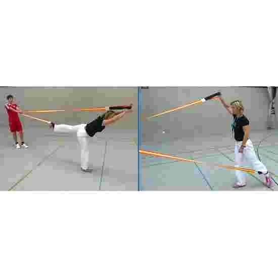 The Reivo “Short” band has lots of different uses. With just one band you can train strength, speed and endurance. Its high-quality finish without any metal or hard plastic parts allows children and teenagers to train worry-free using the elasticated band. It can also be stretched out to cover longer distances in a large sports hall. Thanks to the practical quick-release system at both ends, the Reivo “Short” band can be easily attached to other Reivo bands.