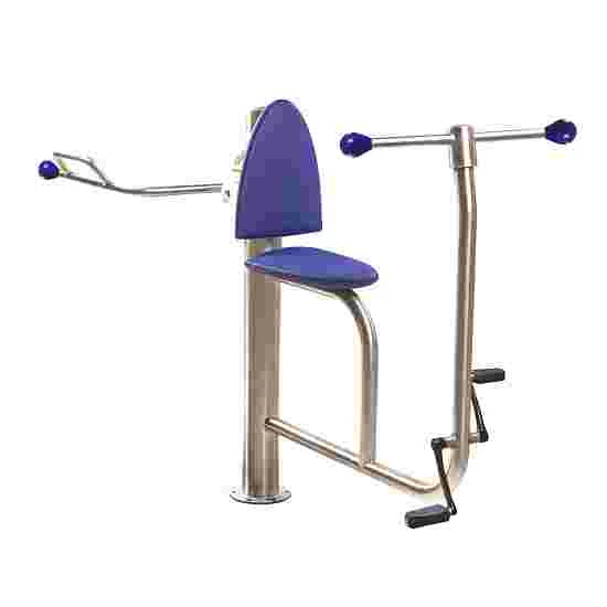 The Saysu “SE” Bike & Trapezius is a piece of outdoor fitness equipment made of stainless steel and, with its elegant look, a real eye-catcher in any outdoor area. It can be used for exercises that are comparable to lifting light weights or cycling with low resistance. The plastic seat is particularly impact-resistant and break-proof. The special vibration damping system with rubber spring elements in the joints ensures smooth movements. Advantage: the damping increases steadily from the zero position, there is a damped stop 30° to each side and the rubber spring elements work silently and are maintenance-free.