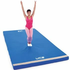 UCS 400 Series Competition Landing Gym Mats – Available in blue, two thicknesses, and in many size variations. Combining our 1.375″ firm top layer of crosslink with our exclusive bottom layer of HR foam, UCS delivers outstanding absorption for the perfect dismount. Our Competition Landing Gym Mats are manufactured with our exclusive world famous 21oz. Embassy Vinyl with an embossed finish, giving your gymnast sure footing.