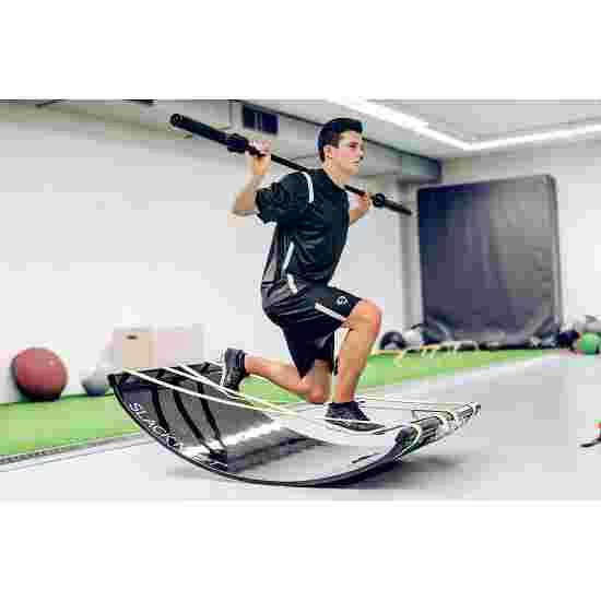 The Slack Nut is a great and highly effective training aid: elasticated belts are stretched over the board. Exercise standing up or lying down – the slacklines provide a stable supporting surface. Change the difficulty level using the slacklines. Pulling them more tightly makes exercising easier. Loosening them makes it more difficult because it causes them to sway more. The body tries to counteract the instability, using the entire muscle system in the process.