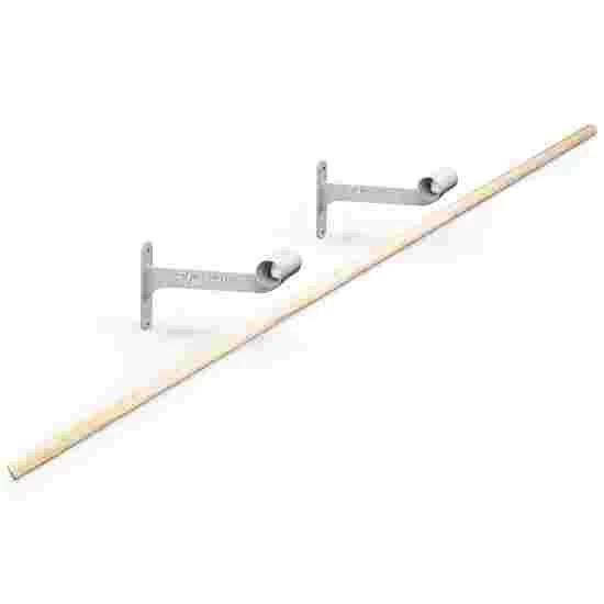 The 2-m-long ballet barre is made of strong ash wood and has a diameter of 4 cm. Using the fixtures supplied, the barre is easy to mount – even to solid walls. The wall brackets can be mounted at any height, making the equipment suitable for children as well. For children, we recommend a height of approx. 87 cm and for adults, a height of approx. 110 cm.