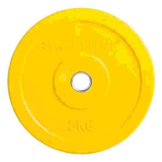 The Sport-Thieme bumper plate is a brightly coloured weight disc with a diameter of 45 cm and is suitable for all barbell bars with a diameter of 50 mm. Are you new to fitness training? Or even a pro? Choose between 5 weight levels to tailor your workout to suit your fitness level perfectly. Of course you can also combine the weights with one another. Should the weight discs fall off during your workout, they will not be damaged thanks to their rubber coating. Another advantage of the rubber is that it does not make a loud noise when the weights are placed down.