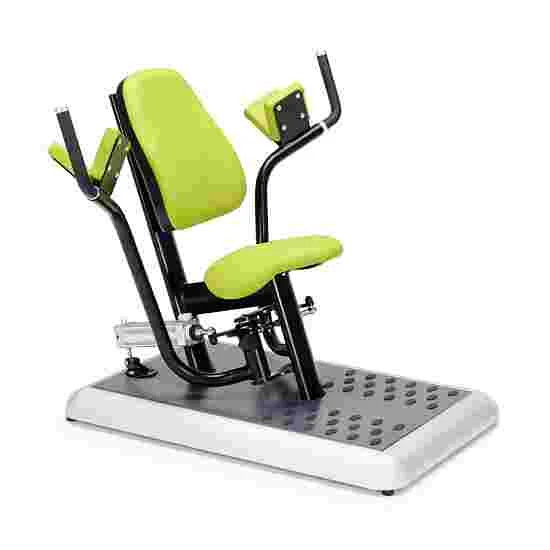 The Sport Thieme hydraulic butterfly / reverse fly machine features hydraulic technology allowing training at 6 different intensity levels. What’s more, as the resistance works in both directions, it allows you to train the two opposing muscle groups at the same time. Using the handwheel, the intensity of the workout can be easily adjusted to suit your fitness level. The platform features rubber pads, providing you with extra grip.