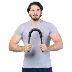The Sport-Thieme “Spring King” is an elongated iron spring. The flexible weight bar has training resistance, that is exerted by pushing, rather than pulling it. For fitness training, you just need to hold both handles and form a “U” shape with the fitness trainer. The process of pulling your arms in particularly strengthens the chest muscles. But the arms, shoulders and back also benefit.