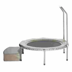 The Thera-Tramp is sprung with a total of 42 individual cable rings and is therefore very soft – ideal for use in therapy and rehabilitation. The trampoline bed is flexible and stitched to the frame. This prevents slipping between the frame and the bed. The powder-coated steel frame is resistant to scratches. The steel legs can easily be unscrewed and the rubber feet on the end of the legs provide stability, even on slippery surfaces. A step and a handrail are available and do not come as standard. The trampoline is available in 3 different weight categories and in either a champagne or metallic green colour.