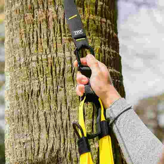 The TRX “Burn” suspension trainer is equipped with a steel slider, which makes it even easier to adjust the length. The practical door anchor makes suspension simple. Smaller gyms or clubs can therefore offer training in a small space. What’s more, the levelling loop also allows you to train using one arm. At 4 cm, the belts are particularly wide. The foam rubber grips fit comfortably in the hand, offer a secure hold and thus allow for a comfortable workout. Furthermore, the TRX “Burn” suspension trainer is suitable for permanent use in gyms. The suspension trainer is authenticated by a hologram and the serial number.