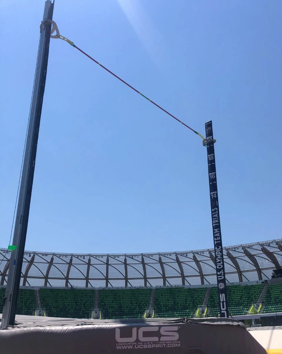 ULTIMATE 6300 POLE VAULT STANDARDS – Built for a Grand Prix event but designed for every day use and durability. Height adjustment from 6’6″ (1.98m) to 21′ (6.4m). Trolley base for depth adjustment.